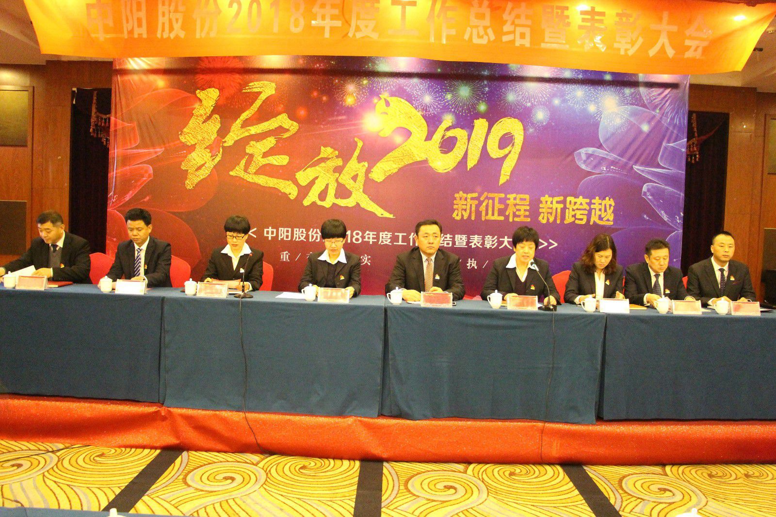 2019年1月8日上午,中陽股份2018年工作總結(jié)暨表彰大會(huì)在藍(lán)海酒店順利召開??偛?、北京辦事處全體成員、生產(chǎn)部班長級(jí)以上人員及員工代表參加了此次年度大會(huì)。
