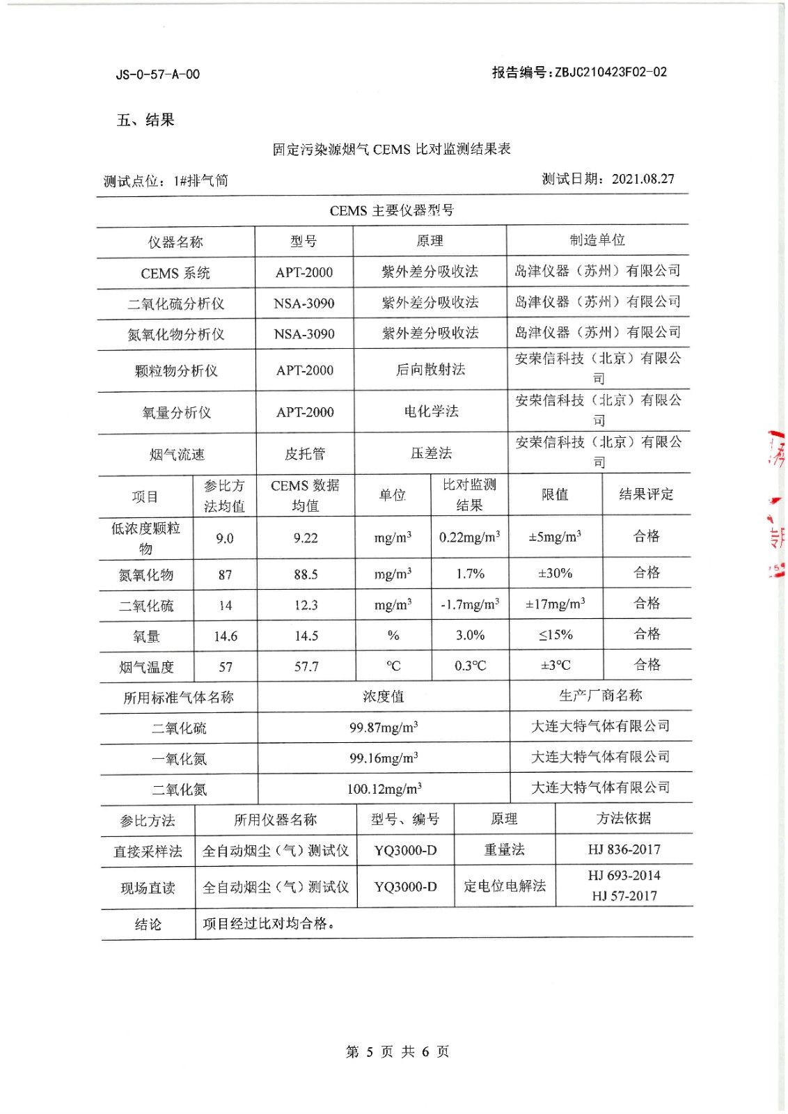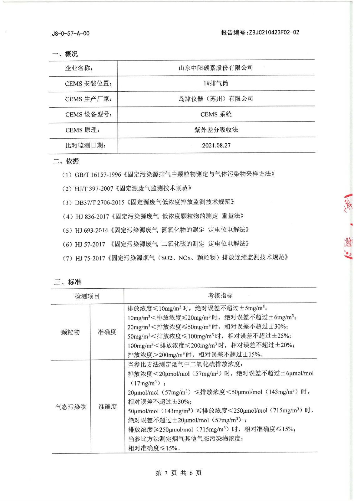 煙氣自動監(jiān)測比對報告(第三季度)